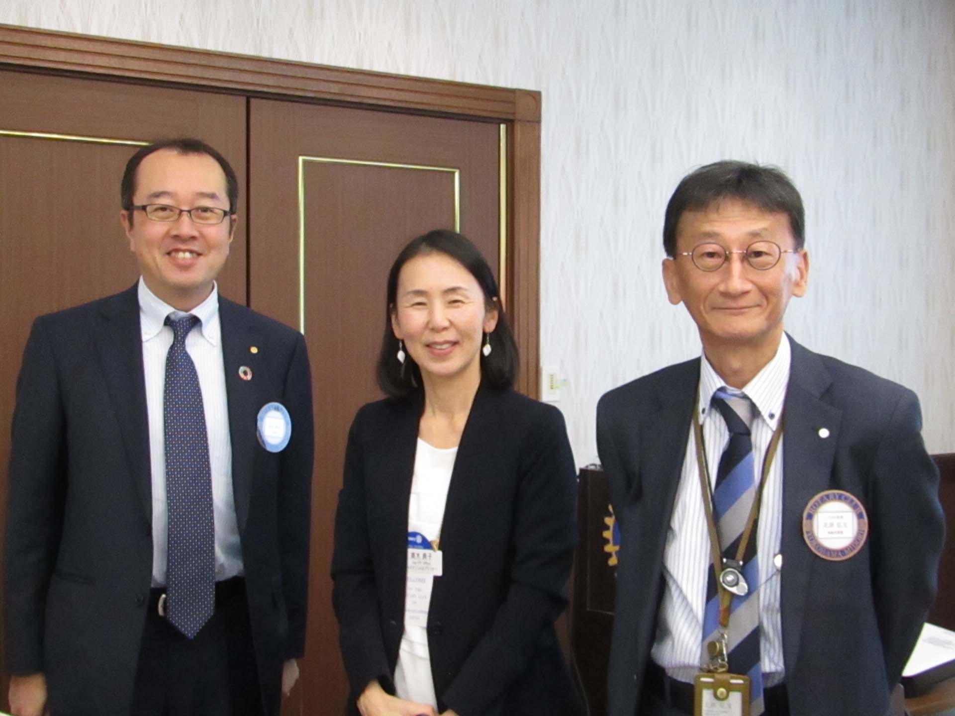 河原裕典 会員 | 髙木 典子様、ようこそおいで下さいました。卓話 よろしくお願い致します。高誠さん、いらっしゃいませ! |
