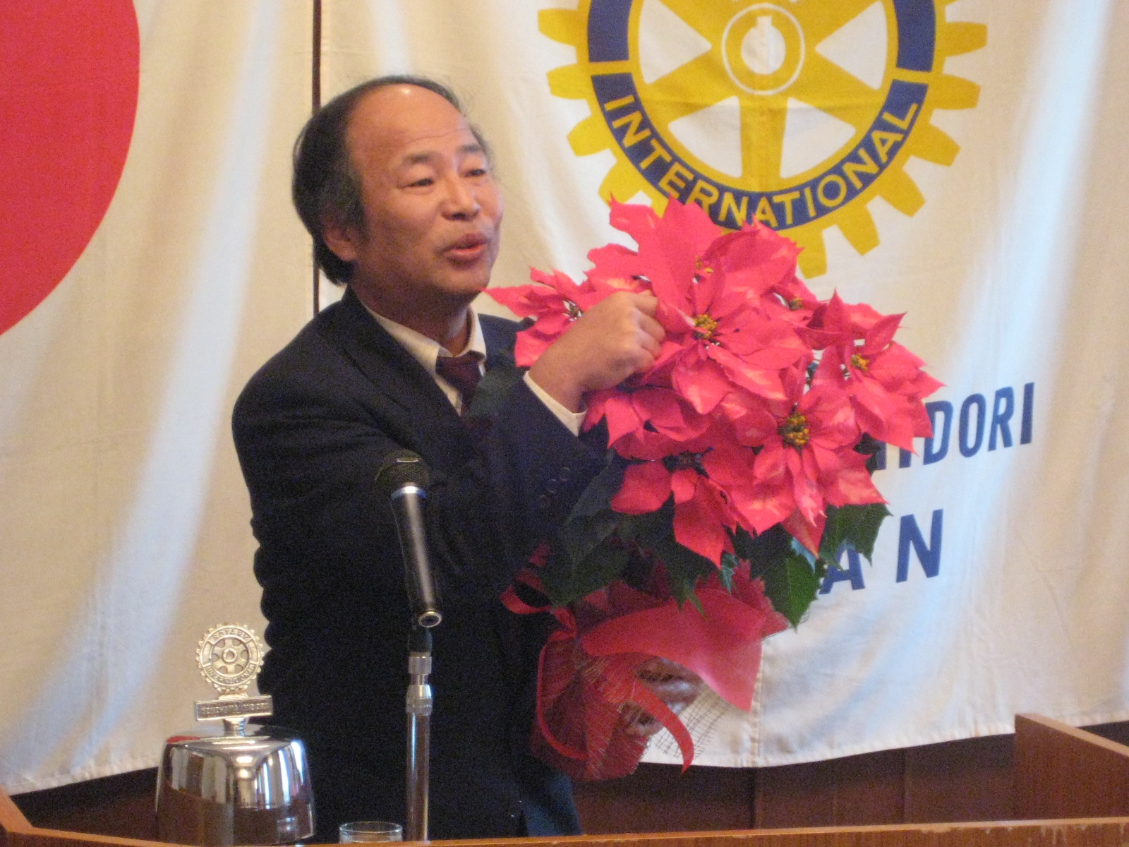 そこで今日は、この時期の最もウインターギフトとして使われる代表的な花3点 シクラメン ポインセチア シンビジウムを持ってきましたのでそれぞれの簡単な管理 手入れ方法などを説明して本日の卓話を終わらせていただきます。ありがとうございました。