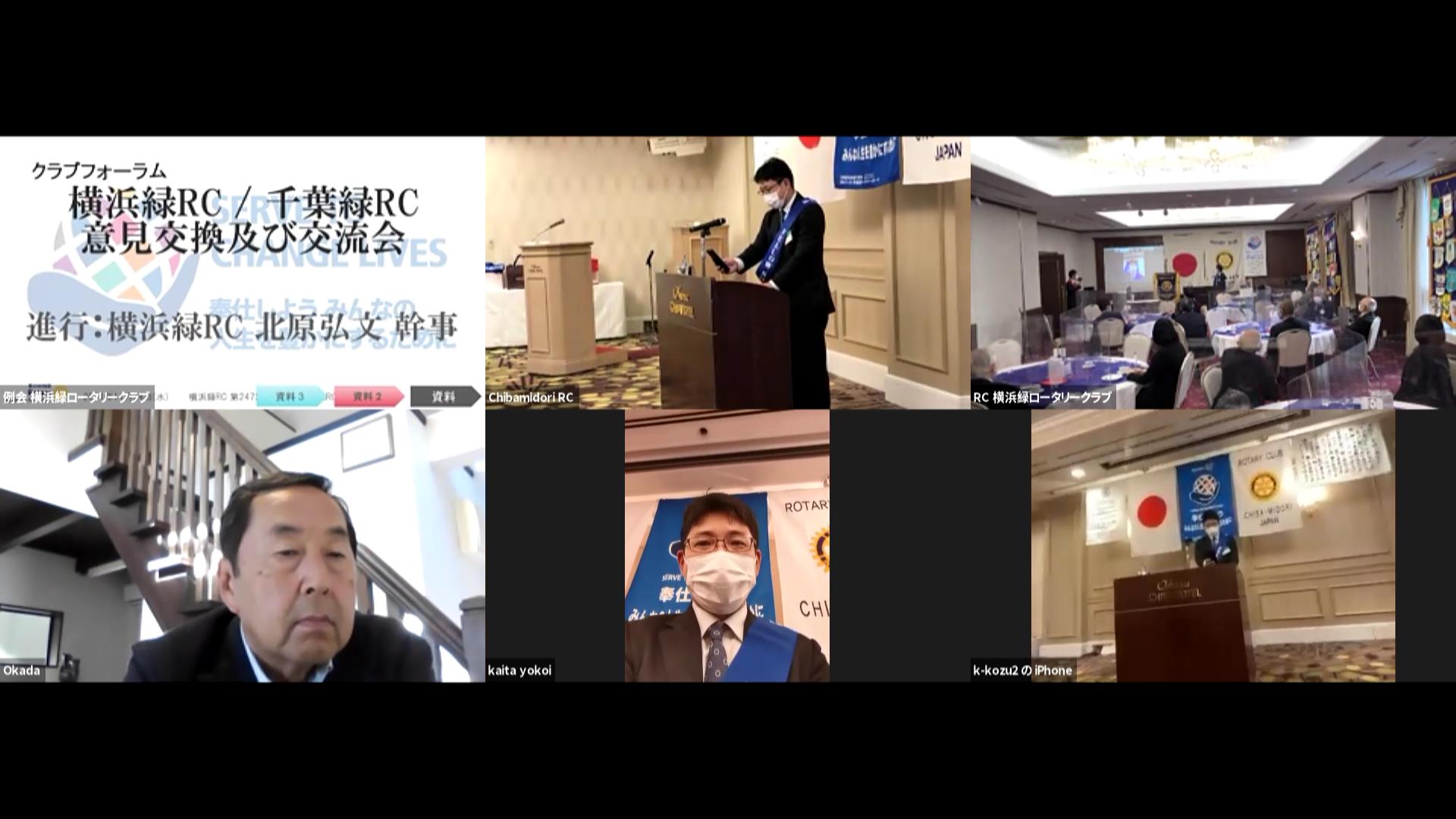 本日の例会は横浜緑RCさんとのzoom合同例会にお声掛けを頂きまして誠に有難う御座います。また、直前まで北原幹事様には色々とお気遣いを頂きまして、本日、無事に開催出来ました事に感謝申し上げます。