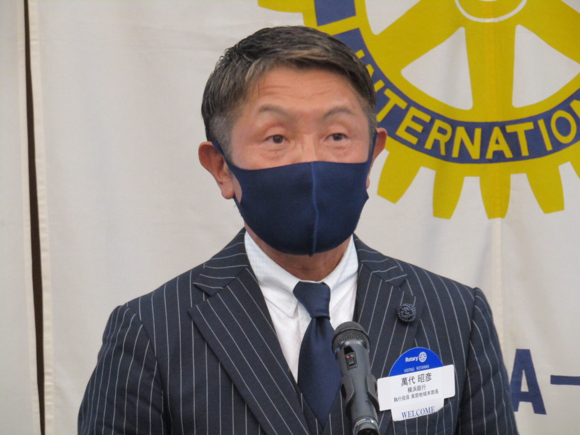 田中孝 会員 | ・横浜銀行 執行役員 萬代 昭彦様、おひさしぶりです。ようこそおいで下さいました。卓話 楽しみにしております。 |