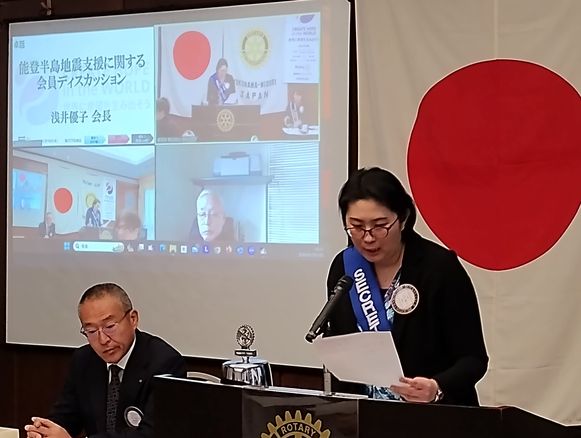この後、卓話のお時間を頂いて、能登半島地震の被災地支援について、会員ディスカッションの機会を持ちたいと思いますので、短いですが、幹事挨拶は、この程度とさせていただきます。ありがとうございました。