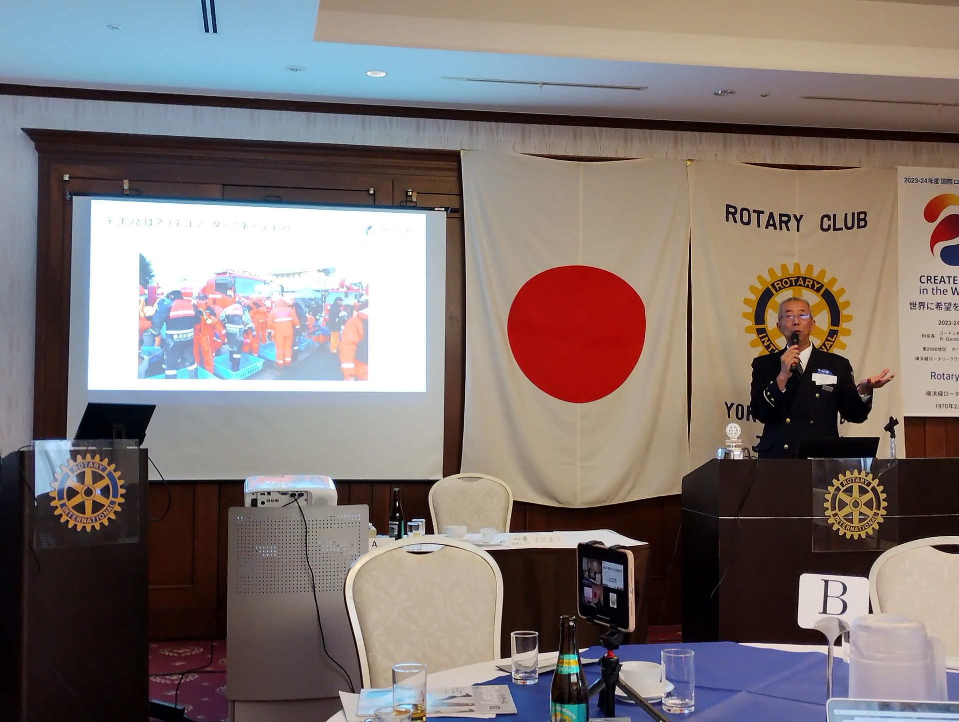 松尾伸治 会員 | 寺山横浜緑消防署長様、本日ようこそおいで下さいました。本日の卓話、よろしくお願い致します。 |