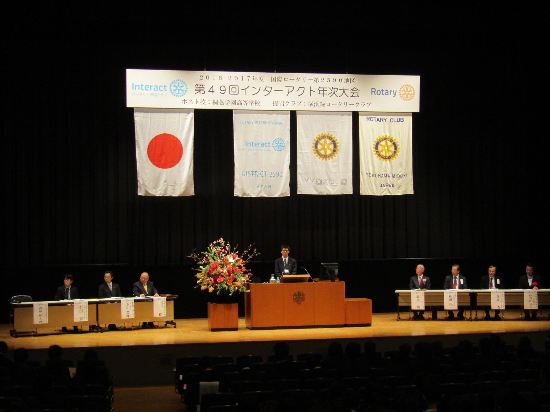 昨日1月29日の横浜緑RC第2265回例会の活動目的は『国際ロータリー第2590地区 第49回インターアクト年次大会』でした。