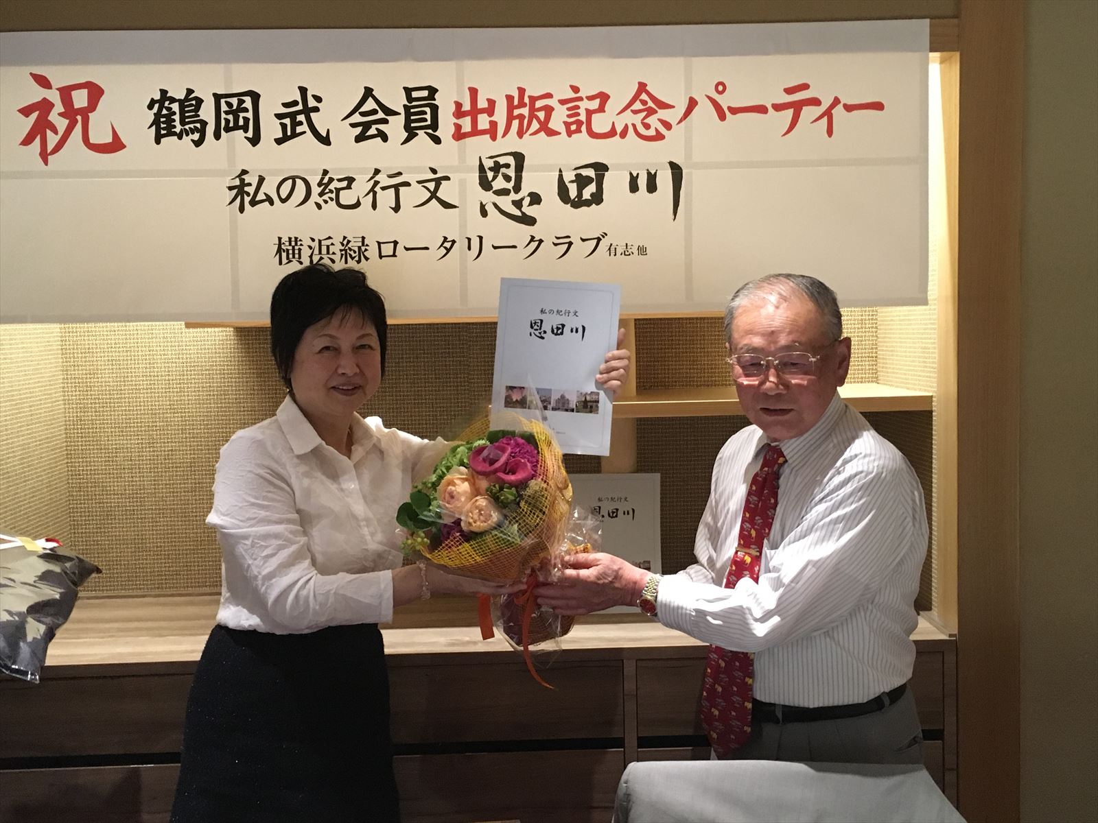 鶴岡会員 紀行文出版記念パーティー 投稿者: Manager2017/05/232016-17年度、トッピクス、ニュース、ロータリー年度 鶴岡会員が『私の紀行文 恩田川』を出版されたので、昨日(5月22日) 元当クラブ所属の佐藤征己会員(東京中央RC)を実行委員長としてクラブ有志で「出版記念パーティー」が開催されました。 関連