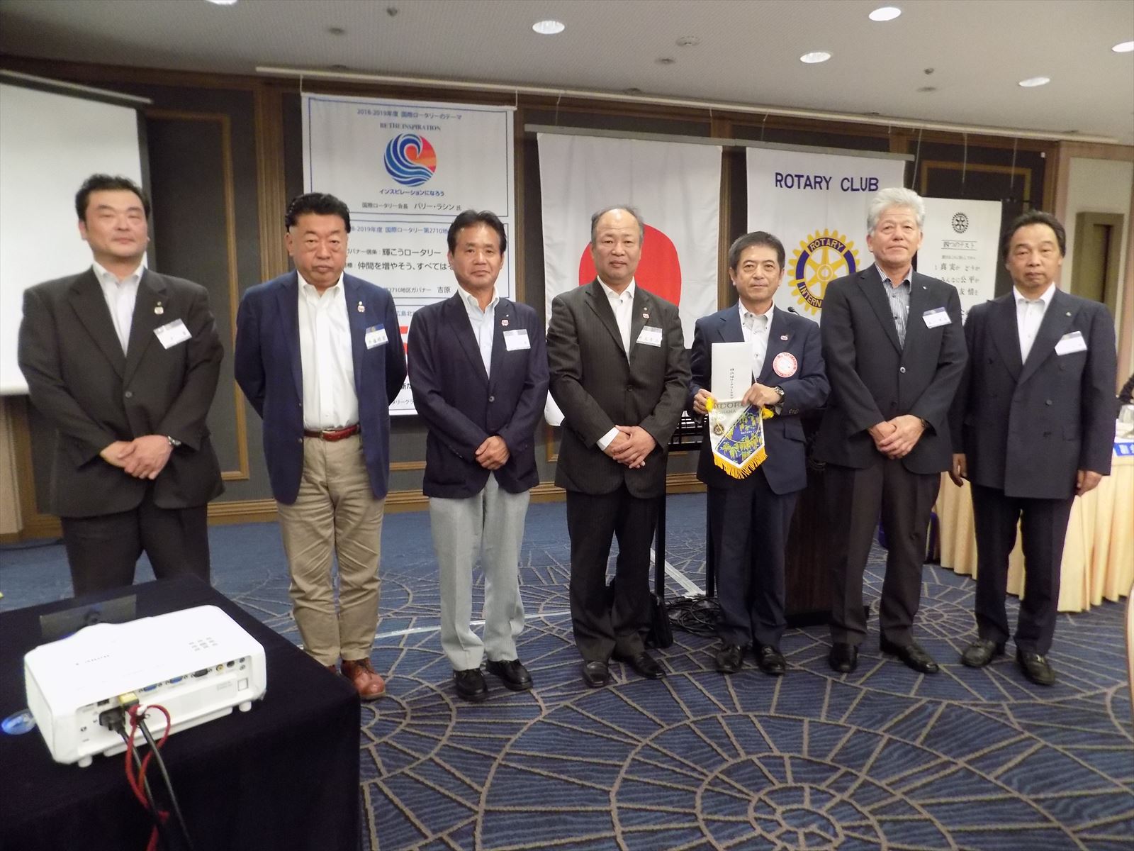 さすがに100名からの規模になると、例会場も立派ですし、さしずめ私たちの5クラブ合同例会の様相でした。雰囲気もとてもフレンドリーで、とても私たちを温かく迎えていただきました。会長時間の中で、横浜緑ロータリーのことを紹介して頂き私たちが会員の熱い思いを託しに来てくれたということも話され、私としてもとても嬉しかったです。